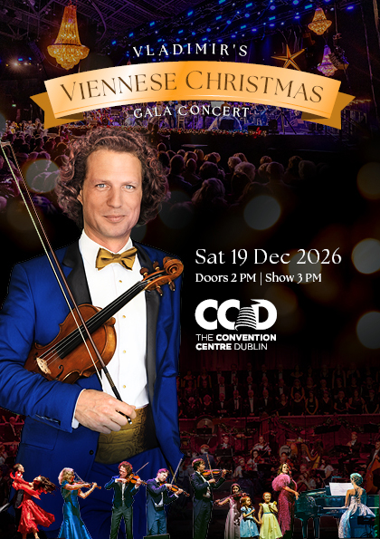 Vladimir’s Viennese Christmas returns to Dublin for a spectacular yet intimate performance. Expect a beautifully crafted selection of classical favourites and seasonal evergreens, featuring live orchestra, choir, special guest vocalists and Vladimir’s musical family, The Jablokovs. Experience this cherished tradition in the stunning setting of Dublin’s Convention Centre this December 19th – the perfect way to begin your Christmas celebrations.